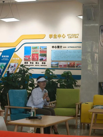 (图5:黄艳钦老师介绍学生科研成果与鼓励新生)