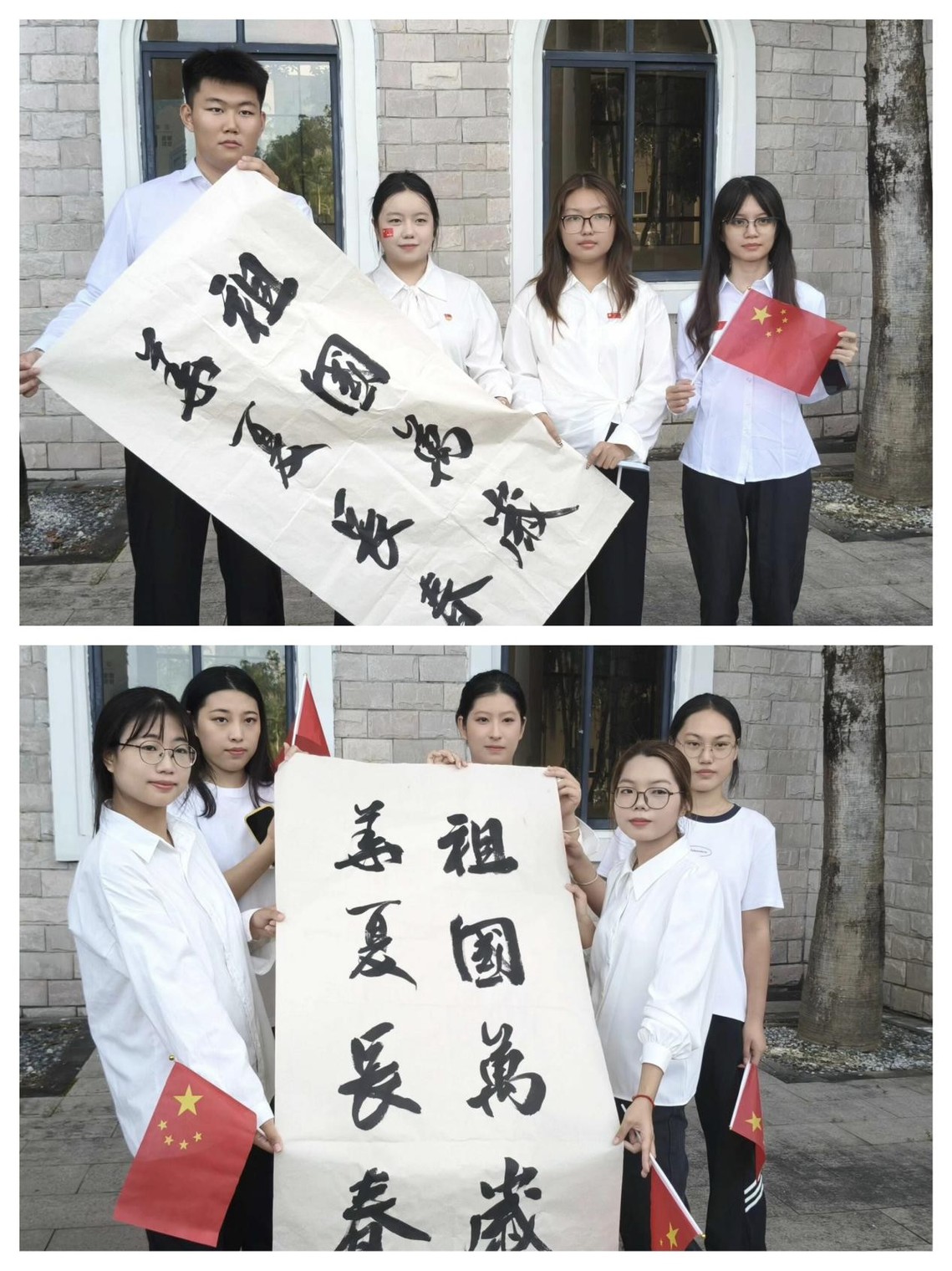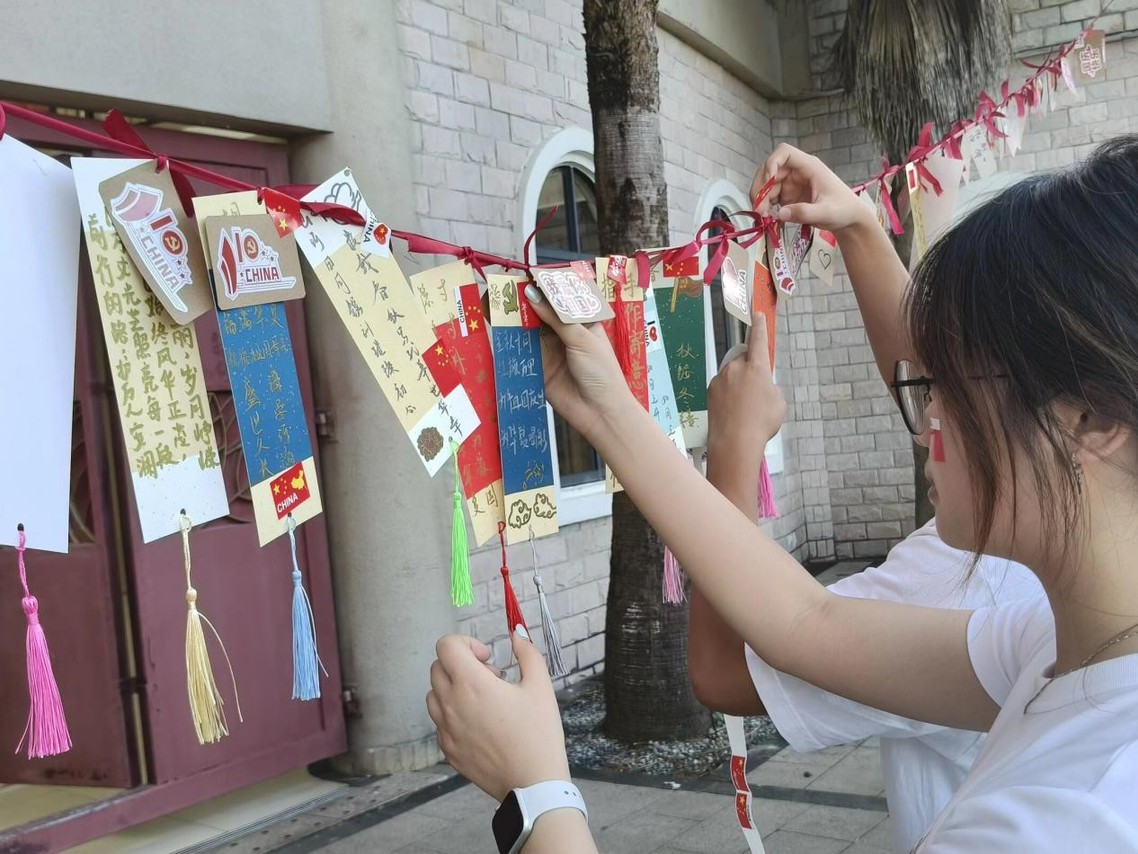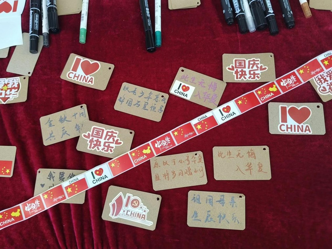 (同学们正在用自己的方式表达对祖国的热爱与祝福)