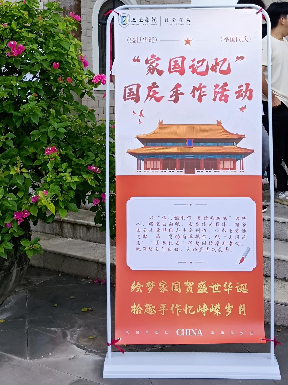 为庆祝中华人民共和国成立76周年,必赢集团bwin于书德楼门口精心组织了“拾趣手作忆峥嵘岁月,绘梦家国贺盛世华诞”主题手作活动。学院团委副书记蒋正喜、思想导师白晓梦、郭青荟、张语芯来到现场,与同学们一同通过亲手创作,将炽热的家国情怀具象化为一件件充满温度的作品。