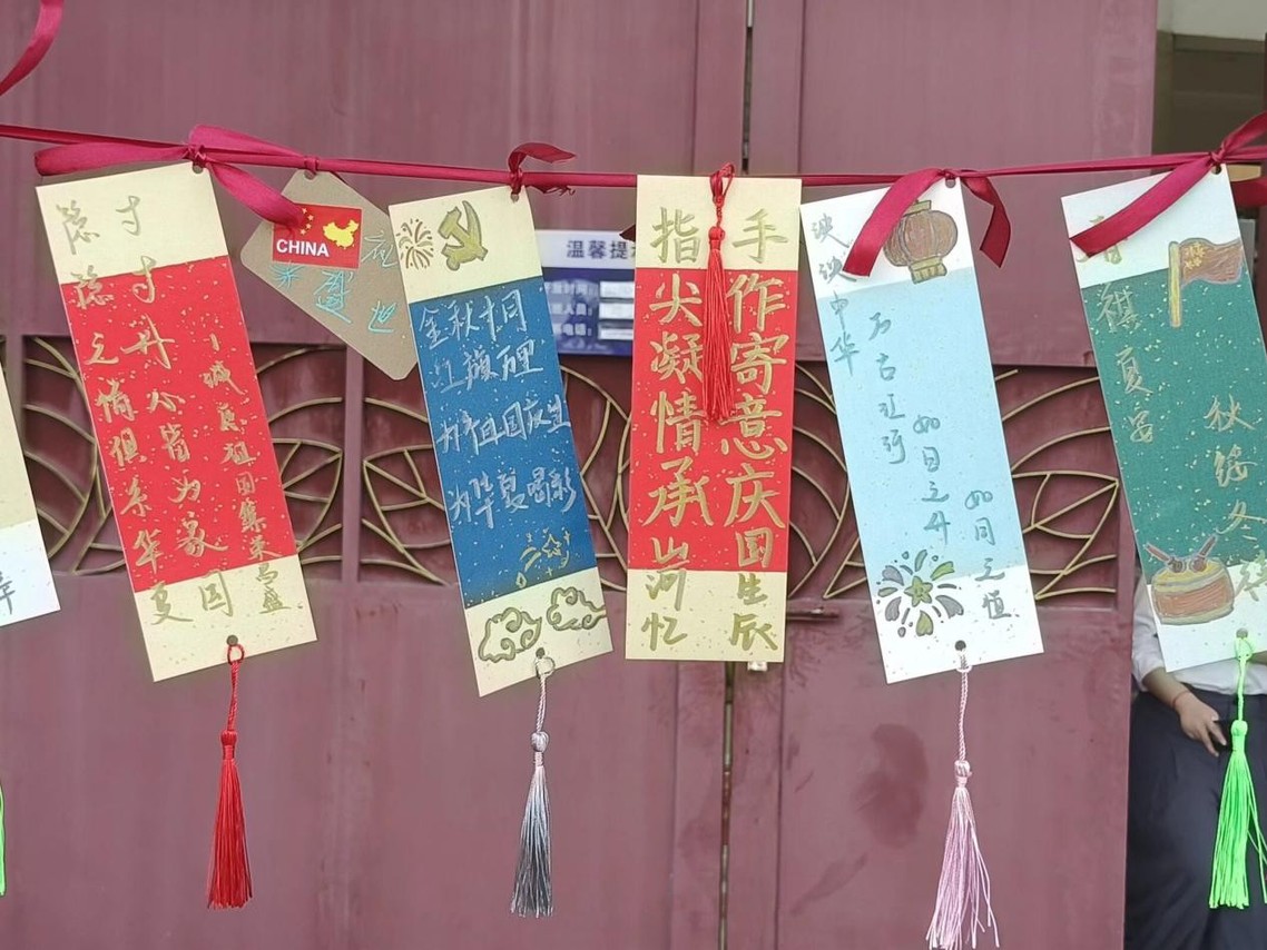 (书签上满是同学们对祖国的热爱与祝福)