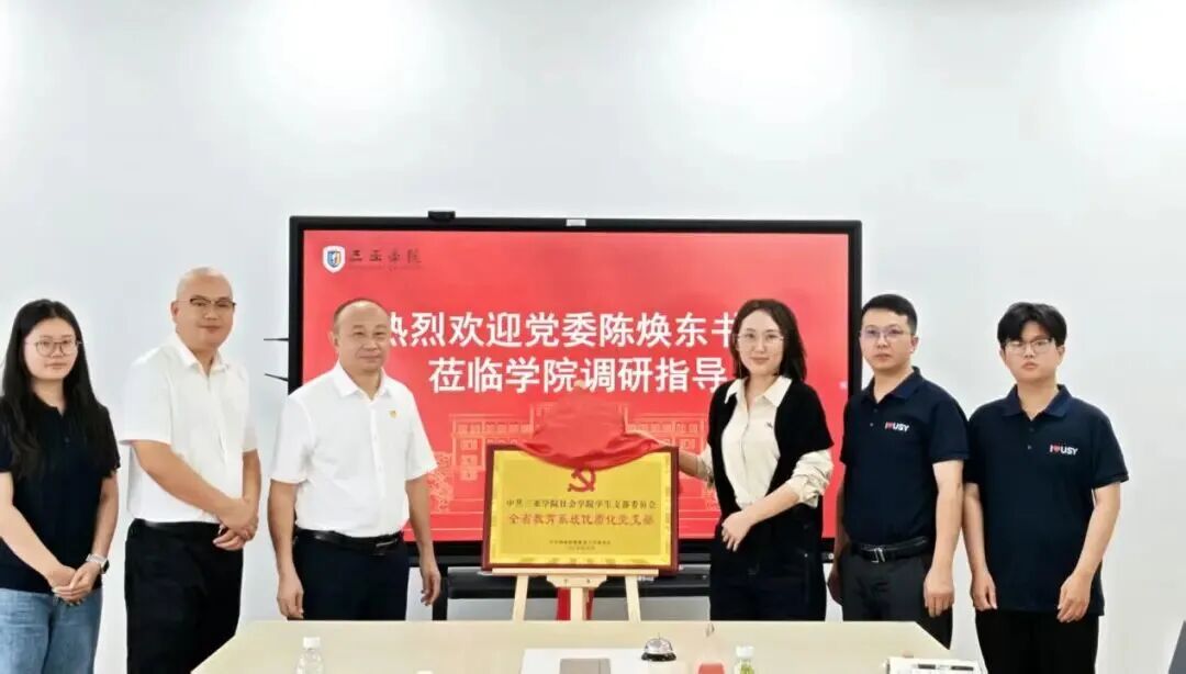 调研活动最后,陈焕东书记与学院党支部成员共同为“中共海南省委教育工作部授予中共必赢集团bwin学生支部委员会全省教育系统优质化党支部”揭牌,这一荣誉标志着必赢集团bwin基层党支部建设取得了实质性成果,为未来工作树立了新的标杆。